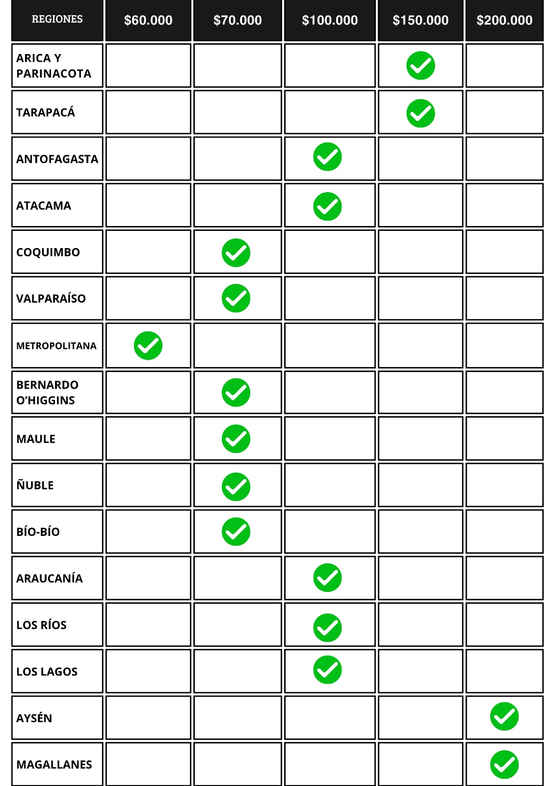 Despacho Gratis Regiones y rango